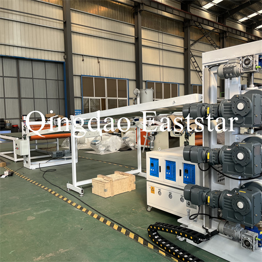 نرم پیویسی اینٹی اسکڈ پلیٹ ایکسٹروڈر آلات: سامان بنیادی طور پر ایک ہی سکرو ایکسٹروڈر ، تھری رولر کیلنڈر ، 6 میٹر کولنگ پر مشتمل ہوتا ہے۔ بریکٹ ، ایک ربڑ رولر ٹریکشن مشین ، ایک مونڈنے والی مشین ، اور کنویر بیلٹ ڈیوائس۔