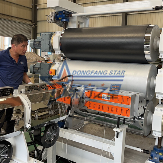 پیویسی اینٹیسٹیٹک شیٹ ایکسٹروڈر آلات: سامان بنیادی طور پر 120 سنگل سکرو ایکسٹروڈر ، ایک تین رولر کیلنڈر ، ایک کولنگ بریکٹ ، ایک ربڑ رولر ٹریکشن مشین ، ایک مونڈنے والی مشین ، اور اے پر مشتمل ہوتا ہے۔