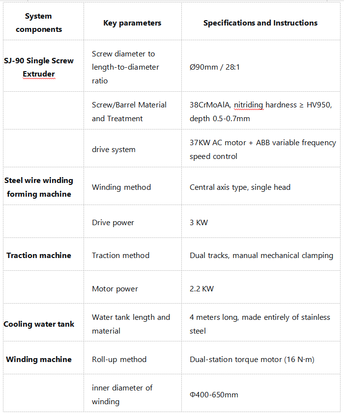 طاقتور پلاسٹائزیشن ، سخت کوٹنگ: SJ-90 ایکسٹروڈر میں 28: 1 L/D تناسب کو بہتر بنانے والا سکرو پیش کیا گیا ہے ، جس سے یکساں PVC پلاسٹکائزیشن کو یقینی بنایا جاسکتا ہے۔ صحت سے متعلق کوٹنگ ڈائی کے ساتھ مل کر ، یہ بغیر کسی مردہ زاویوں کے اسٹیل کے تار کی 360 ° کامل کوٹنگ حاصل کرتا ہے ، جس سے تار ٹوٹنے اور ہوا کے رساو کو ختم کیا جاتا ہے۔
