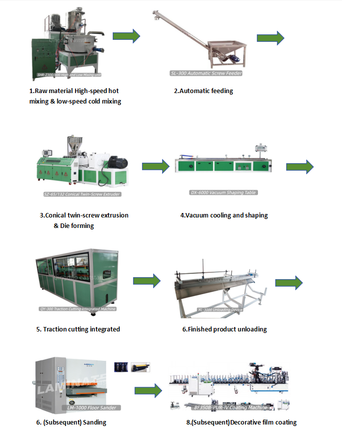 ایک مکمل ایس پی سی فرش پروڈکشن لائن حتمی مصنوع کے اعلی معیار کو یقینی بنانے کے لئے متعدد صحت سے متعلق ماڈیولز کے ایک پیچیدہ نظام کو مربوط کرتی ہے۔